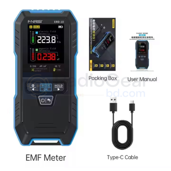 The FNIRSI ERD-10 is a high-sensitivity handheld detector designed to measure electrical and electromagnetic radiation (EMF). Ideal for home, office, and industrial use, this compact device helps detect EMF exposure from appliances, wiring, and electronic devices, ensuring safety and awareness in your environment.